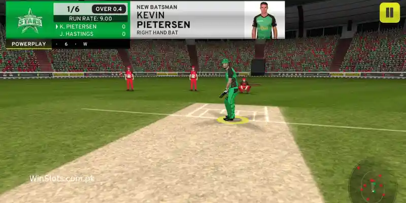 The HD cricket graphics are optimized for mobile devices and include stadium environments, animated players, and scoreboard interfaces.