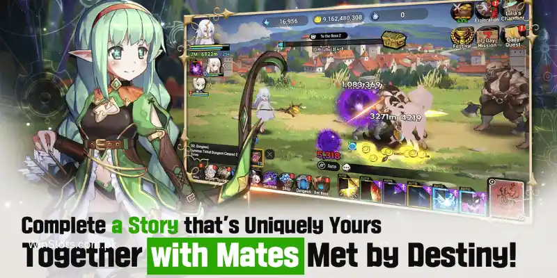 The game uses an auto battle RPG mobile system, where combat runs automatically. Players focus on:
