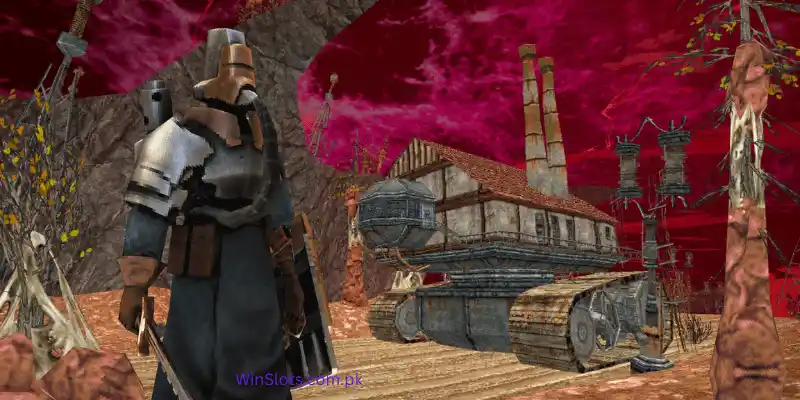 Dread Delusion features a retro inspired art style with low poly environments and surreal color palettes. This design choice: