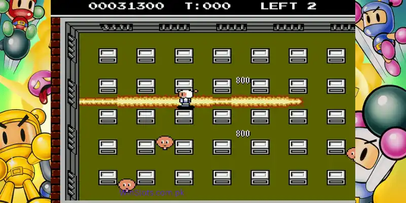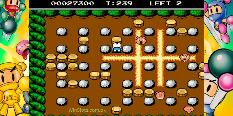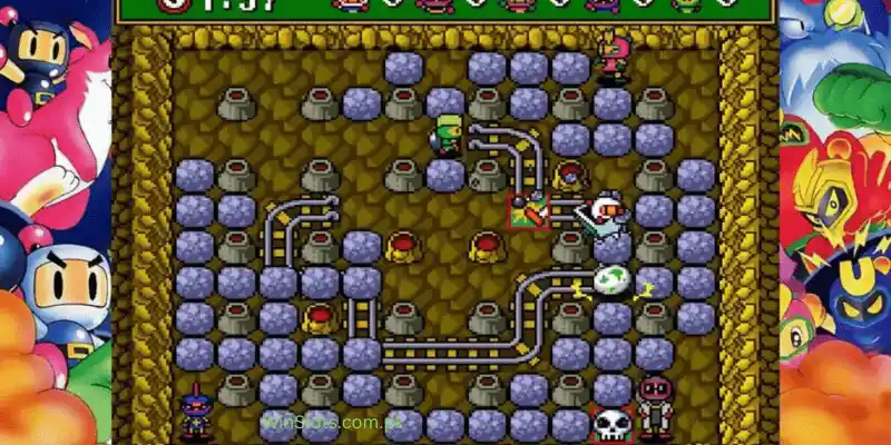 Players can select from multiple Bomberman characters, each with unique skins or abilities unlocked through gameplay progression. Levels are designed with varied layouts and traps, enhancing replayability. Customizable settings allow players to adjust bomb timers and power up frequency for personalized challenges.